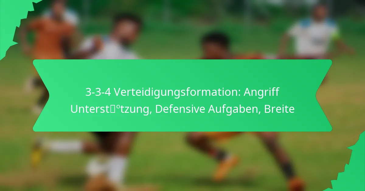 Die 3-3-4-Defensivformation im Fussball ist ein taktisches Setup, das drei Verteidiger, drei Mittelfeldspieler und vier Stürmer umfasst. Diese Formation betont das offensive Spiel, während sie eine solide defensive Struktur aufrechterhält, was es den Teams ermöglicht, hoch zu pressen und Tormöglichkeiten zu schaffen.