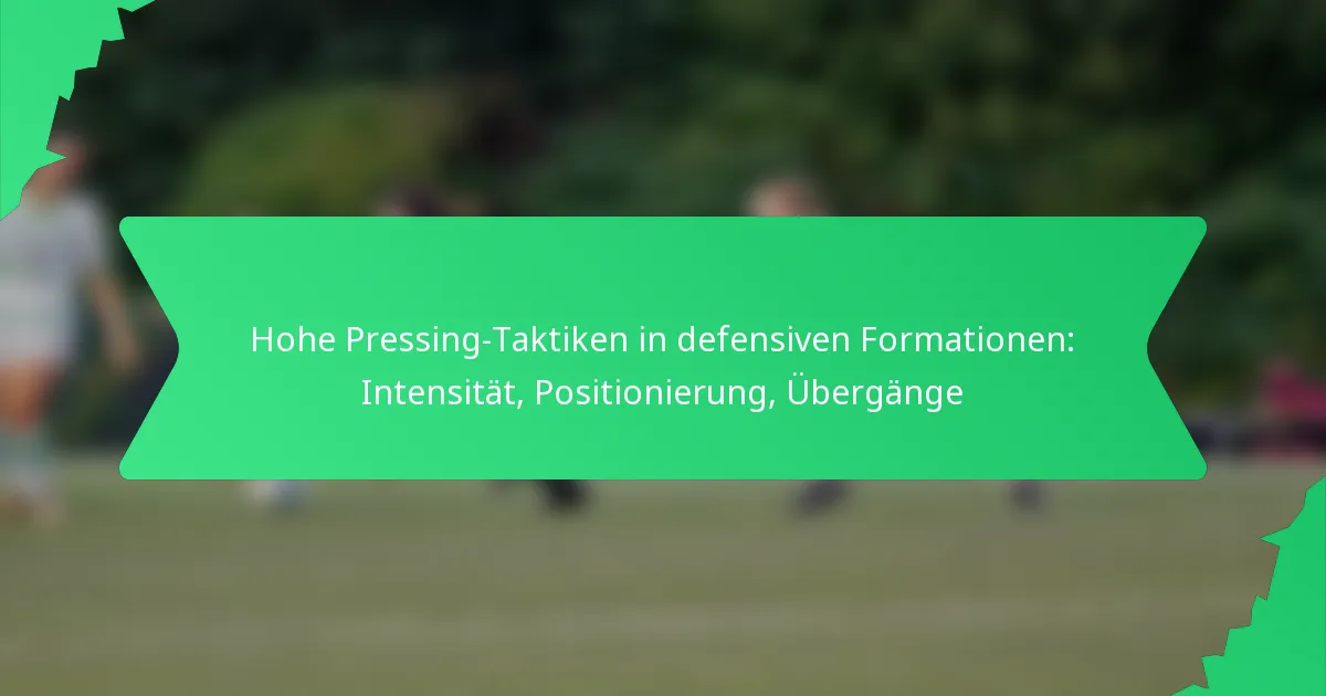 Hohe Pressing-Taktiken in defensiven Formationen konzentrieren sich darauf, intensiven Druck auf die Gegner hoch auf dem Spielfeld auszuüben, um deren Aufbau-Spiel zu stören und schnell den Ballbesitz zurückzugewinnen. Diese Strategie beruht auf der Positionierung und Koordination der Spieler, um Ballverluste zu erzwingen, und betont die Wichtigkeit von Kompaktheit und Wachsamkeit. Die Effektivität dieser Taktiken wird erheblich durch die Intensität beeinflusst, mit der die Spieler agieren, was ihre Fähigkeit zur schnellen Transition im Spiel beeinflusst.